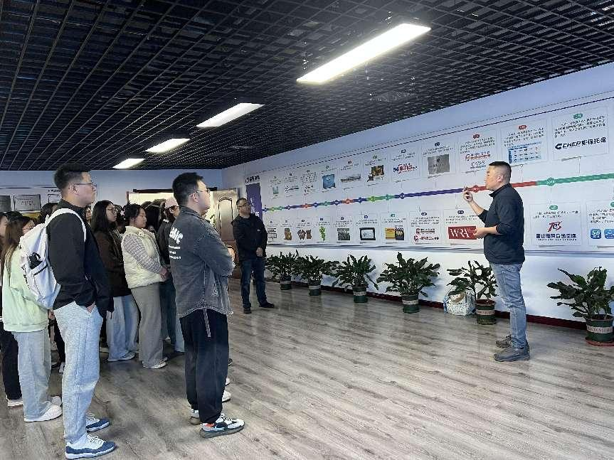 在见习考察过程中,太阳集团122cc电商专业师生首先参观了唐山成联电子商务有限公司的展厅,详细了解了公司的发展历程、主营业务、运营模式及取得的荣誉。唐山成联电子商务有限公司以其独特的商业模式和前沿的技术应用,在产业互联网和B2C电子商务领域取得了显著成绩,特别是在现代物流与供应链管理方面,积累了丰富的经验和技术实力。通过参观,师生们对公司的实力和发展前景有了更加直观和深刻的认识。