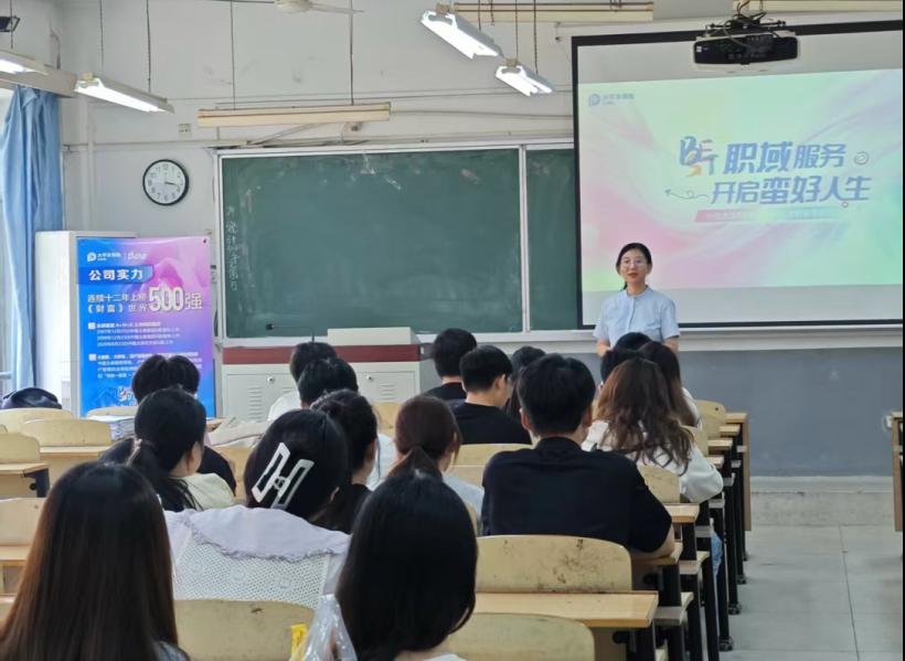 随后,中国人保招聘负责人贾琼经理以翔实的数据与案例,全面展现中国人民保险企业深厚底蕴与卓越成就。作为国内保险行业的领军企业,中国人保凭借多元化业务体系、创新型服务模式及强大的风险保障能力,在服务国家战略、护航民生发展中发挥重要作用。此次招聘聚焦保险精算、客户服务、信息技术等多个专业需求,旨在选拔兼具专业素养与创新思维的复合型人才。会上贾经理着重介绍了中国人保特色人才培养机制以及清晰透明的晋升通道,为员工提供广阔的职业发展空间,实现个人成长与企业发展同频共振。