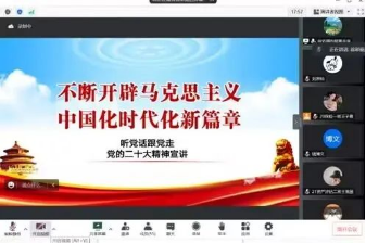 为深入学习宣传贯彻党的二十大精神,引导团学干部坚定不移听党话、跟党走,做有理想、敢担当、能吃苦、肯奋斗的新时代好青年,用党的科学理论武装青年,用党的初心使命感召青年,太阳集团122cc团总支于11月28日线上开展了团学干部党的二十大精神宣讲会。本次宣讲会由太阳集团122cc团总支书记徐彩丽主讲,20级和21级全体团学干部参加。
